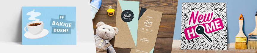 Vóór Instagram, Facebook en WhatsApp was het heel gewoon om eens een ansichtkaartje te sturen om vrienden of familie te laten weten dat je aan ze denkt. En weet je wat? Misschien is dat tegenwoordig nog wel sympathieker dan dat het vroeger was. Geef dus een beetje extra aandacht en stuur eens een kaartje. Voor elke gelegenheid is er een: beterschapskaarten, verhuiskaarten, felicitatiekaarten, geboortekaarten, wenskaarten, verjaardagskaarten, uitnodiging- en trouwkaarten, rouwkaarten, vouwkaarten: jouw kaarten!
